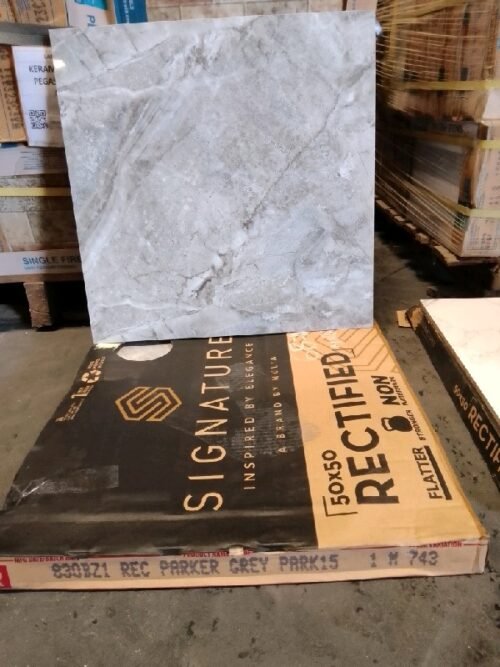 KERAMIK LANTAI GLOSSY MARBLE FLAT 50 X 50 MULIA SIGNATURE REC PARKER GREY (KW2)